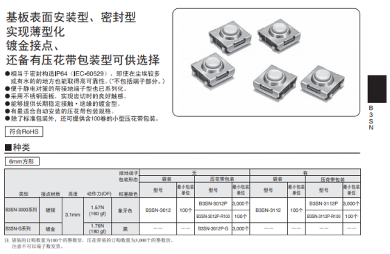 歐姆龍的輕觸開關普遍應用在電動牙刷,輕觸開關適合高密度表面貼裝,有的焊接后可清洗,密封型可防塵,最適合惡劣環境選用,電路設計簡單。產品壽命10萬~1000萬次不等。