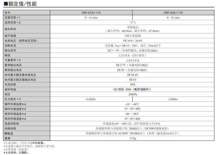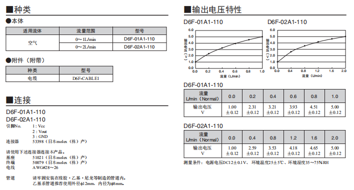 微型流量傳感器D6F-02A1-110